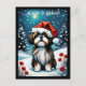 Baby Shih Tzu Snowy Meadow Santa Dog Christmas Postcard