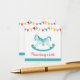 Pretty hand-painted rocking horse with stars and graphic bunting, baby shower book requesting cards in neutral aqua, yellow and red. Perfect for you to request books with a personal message inside as a sedimental gift for your new baby. Original whimsical baby boy blue hobby rocking horse watercolor painting and graphic design by Sarah Trett for www.mylittleeden.com on Zazzle.