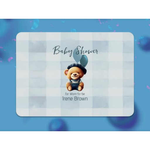 Enhance your baby shower with a custom baby trivia game activity. Guests participate in the trivia to try to correctly answer the questions. Five questions are on the front on the board. The answers are on the back. This is customizable, so adjust or change the text as you choose. Bear Jean Baby design. Use the template to adjust or change the text as needed.