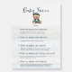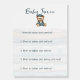 Enhance your baby shower with a custom baby trivia game activity. Guests participate in the trivia to try to correctly answer the questions. Five questions are on the front on the board. The answers are on the back. This is customizable, so adjust or change the text as you choose. Bear Jean Baby design. Use the template to adjust or change the text as needed.
