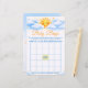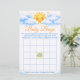 Fun and interactive baby shower bingo game card featuring a cheerful sunshine theme with a smiling sun, soft clouds, and bright stars. Perfect for entertaining guests and adding excitement to your baby shower party. This printable-style game card matches sunshine baby shower decorations and creates a joyful group activity everyone will enjoy.
