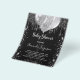 A stylish black background. Decorated with faux silver glitter and balloons. Personalize and add a name, party details. The name is written with a hand lettered style script