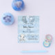 For a baby shower, celebrating a baby boy. A blue faux metallic looking background. Decorated with blue faux glitter drips, paint dripping look, balloons and a cute little baby elephant boy. Personalize and add the name of the mom to-be's name and party details. The name and the text: Baby Shower are written with a hand lettered style script