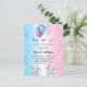 For a baby shower for both a baby boy and baby gir. A blue white and pink gradient background. Decorated with glitter and blue, pink and white balloons and glitter dust. A baby boy elephant and a gaby girl elephant. Personalize and add the name of the mom-to-be and party details. The name and the text: Boy or Girl are written with a hand lettered style script