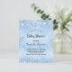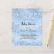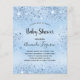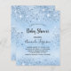 For a baby shower, celebrating a baby boy. A light blue background. Decorated with faux sparkles. Templates for the mom to-be's name and party details. The name and the text: Baby Shower are written with a hand lettered style script