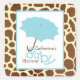 Baby Shower Blue Umbrella & Giraffe Print Square Sticker