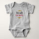 Body Suit for little girls reveal party with word that say, "too Cute for words"gray,