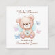 Create a personalized baby shower enclosure card as part of your baby shower invites. The front of the card has, "Baby Shower," with the name of the mom-to-be. The back has a personalized message that you can change. Of note: the current message encourages guests to bring a book in lieu of a traditional card. Features Bears & Butterflies design. Use the template to personalize.