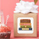 Baby Shower Bookplate Sticker featuring a stack of whimsical books. A great addition for Baby's First Library or use as a personalized This Book Belongs To Sticker. Pair with our matching bring a book request card