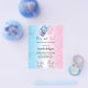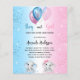 For a baby shower for both a baby boy and baby gir. A blue white and pink gradient background. Decorated with glitter and blue, pink and white balloons and glitter dust. A baby boy elephant and a gaby girl elephant. Personalize and add the name of the mom-to-be and party details. The name and the text: Boy or Girl are written with a hand lettered style script