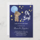 Baby shower boy teddy bear navy blue stars invitation