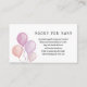 A book request insert card baby shower by mail. Featuring watercolor pink balloons and poem: "ONE SMALL REQUEST, WE HOPE NOT TOO HARD PLEASE SEND A BOOK INSTEAD OF A CARD. BABY WILL CHERISH THE BOOK, WELL LOVED OR BRAND NEW. IF ABLE TO, PLEASE SIGN THE INSIDE WITH A MESSAGE FROM YOU!"