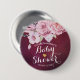 Baby Shower Chic Boho Floral Feathers Burgundy Red Pinback Button