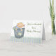 Baby shower invitation with cute baby in denim pocket with green heart background and coordinating stripe border.