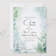 Watercolor Foliage in shades of dusty blue and greens with QR code on back - Use our easy to customize template to personalize with your baby shower details - the back is a coordinated color . illustration using Ai, #generativecontent art Created by ©WhimsicalArtwork™ This is part of a complete Wedding Stationery Suite with matching wedding, baby shower and other event stationery.