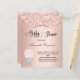For a baby shower, celebrating a baby girl. A blush, rose gold faux metallic looking background. Decorated with faux glitter dust, and a cute little baby elephant girl in a hot air balloon. Personalize and add the name of the mom to-be's name and party details. The name and the text: Baby Shower are written with a hand lettered style script