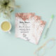 For a baby shower, celebrating a baby girl. A chic white background. Decorated with rose gold, pink faux glitter drips, paint dripping look, balloons and a cute little baby elephant girl. Personalize and add the name of the mom to-be's name and party details. The name and the text: Baby Shower are written with a hand lettered style script