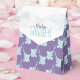 Cute baby shower favor box, featuring cute elephant blowing heart shaped bubbles pattern. Pretty purple, aqua blue baby boy shower elephant design. Personalize with your baby shower honors name. Uniquely illustrated and designed by Sarah Trett.