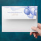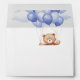 Baby shower envelope decorated with an adorable teddy bear flying on balloons in the clouds.