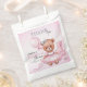 Favor Bags Baby shower featuring an adorable watercolor illustration of a teddy bear in a cute pink dress.