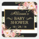 Baby Shower Floral Black White Striped Gold Frame Square Sticker