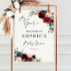Boho Burgundy and Blush Baby Shower Welcome sign. This sign is characterized by boho burgundy and blush flowers with two modern high-class fonts that shape the trends of the present and future festive events.