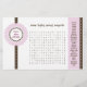 These 5.5" x 8.5" games can be personalized with your guest-of-honor's name at the top. Use them as a fun ice breaker for guests by having them race to find the hidden baby words. This design coordinates with other items such as invitations, thank you notes, stickers and more!