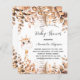 For a baby shower, gender neutral. A white background. a cute little baby giraffe and golden eucalyptus and woodland ferns. Personalize and add the name of the mom to-be's name and party details. The name and the text: Baby Shower are written with a hand lettered style script