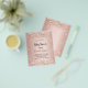 For a baby shower, celebrating a baby girl. A rose gold faux metallic looking background. Decorated with rose gold, pink faux glitter. Personalize and add the mom to-be's name and party details. The name and the text: Baby Shower are written with a hand lettered style script