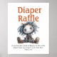 Halloween baby shower poster for the diaper raffle. Spooky cute doll design in orange, black, and white colors. Frame it to put it on your table for the draw or hang it on a wall.