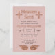 Celebrate a little angel on the way with this heavenly baby shower invitation! This charming invite features the words “Heaven Sent” with crosses and angel wings for an ethereal theme. The metallic rose gold foil adds a touch of elegance and luxury to the invite. Perfect for a Christian or religious baby shower honoring a baby girl, this invitation captures the joy and wonder of a new arrival. Easily edit the text templates for a custom invite.