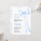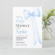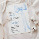 Plain white envelopes are included with paper invitations and will come to fit the invitation size you select. If you don’t need the envelopes, you may choose to not receive them by selecting the dropdown below "Envelopes" and choosing "None." If you’d like to have a design on your envelopes, you can browse all of these available envelopes to find the design that complements your Baby Shower Invitation Blue Coquette Bow.
