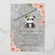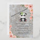 A charming baby shower invitation featuring an adorable panda sitting in the center. The background has a soft gray texture with elegant pink floral decorations along the edges. The invitation is for a baby shower in honor of Nasrin and Baby Samina, with event details such as date, time, and location. The RSVP contact is also included. A sweet and cozy design perfect for a memorable baby shower celebration.