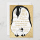 Baby Shower Invitation Gold Baby & Mommy Penguins