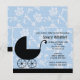 This cute Baby Shower invitation is just waiting to be customized with your details. This blue and black modern design features a stroller and a floral motif.