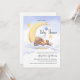 Baby shower invitation decorated with an adorable bunny sleeping on the moon.