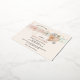 Here's a delightful baby shower invite on a postcard with real foil on the front. An adorable teddy bear sits in a vintage baby stroller with a big bow and stars floating around him. The words "Baby Shower" are in foil as is the name of the mommy-to-be. Text is easily updated with your particulars. The back holds a floral design with a vintage rocking horse on the bottom and holds pre-printed lines for you to write in names and addresses to send your postcards.