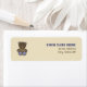 A baby shower label featuring an illustration of a brown stuffed bear with blue gingham paws and ears. Personalize with your name and address. Look for matching invitations, stickers, and more at Jill's Paperie.