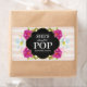 Make your own "She's About To Pop", girl baby shower champagne favors with this personalized label. These pretty DIY "she's ready to pop" champagne labels are unique and add a touch of class to your baby shower. They feature pretty water color flowers with pale pink stripes and a chalkboard design element. The labels are slightly larger to cover most mini wine labels and fits perfectly on standard sized mini champagne bottles.