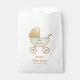 Cute favor bags to thank your baby shower guests. This minimal gender-neutral design features a retro pastel mint green and gold baby carriage watercolor. You can personalize the mother-to-be's name in a stylish script, personalize the text on the baby carriage and add the shower date.