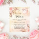 For a modern boho style baby shower. A rose gold, blush pink rustic faux metallic looking background. Decorated with rose gold and pink florals, roses, pampas grass and a happy smiling moon. Personalize and add a name and party details.