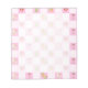 5.5” x 6” notepad with an image of a light pink and dark pink checkerboard with images of baby buggies, diaper pins, baby toys, and red hearts, and a white transparent writing space. See matching notebook. See the entire Kidz Korner Notepad collection under the OFFICE category in the KIDZ KORNER section.