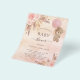 For a modern boho style baby shower. A rose gold, blush pink rustic faux metallic looking background. Decorated with rose gold and pink florals, roses, pampas grass and a teddy bear girl holding a pink balloon. Personalize and add a name and party details.