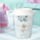 Add charm to your party drinks with these paper cups decorated with a cute bear holding balloons in blue and white. Ideal for a bear baby shower theme.