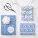 Baby Shower personalized birth date and monogram wrapping paper set. Perfect baby boy shower gift wrapping idea. Traditional pastel baby blue and white colour combo combined with cute clouds, calligraphy sign and footprint patterns. Add the name and initial with easy to use Zazzle editing tool! Visit the shop to see all the collection. There are stickers, blankets, pillows, baby bibs and so much more available.
