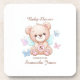 Celebrate the mom-to-be with a cute bear and butterflies personalized baby shower hard plastic coaster. The front features the special event name along with the name of the mom-to-be as well as her monogram. Use the template to personalize.