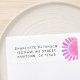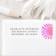 This sun-themed baby shower return address is decorated with a pink watercolor sun.