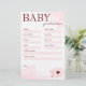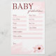 Baby shower prediction game pink with pink flower for a baby girl baby shower, personalized baby predictions game template.