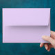 This envelope in lilac purple accented with a purple, pink and blue watercolor pattern on the inside is perfect for sending baby shower invitations.