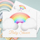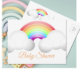 A simple colorful rainbow is the basis of this gender neutral baby shower postcard invitation.